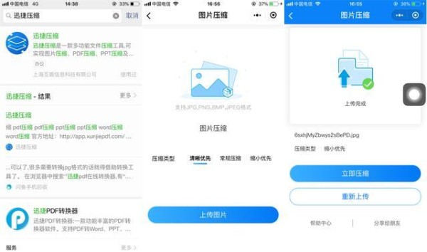 另外如果你喜欢经常拍照,手机中的照片占用空间很大,可以试试微信中这款压缩小程序,在保持照片质量的前提下尽可能的压缩照片大小。