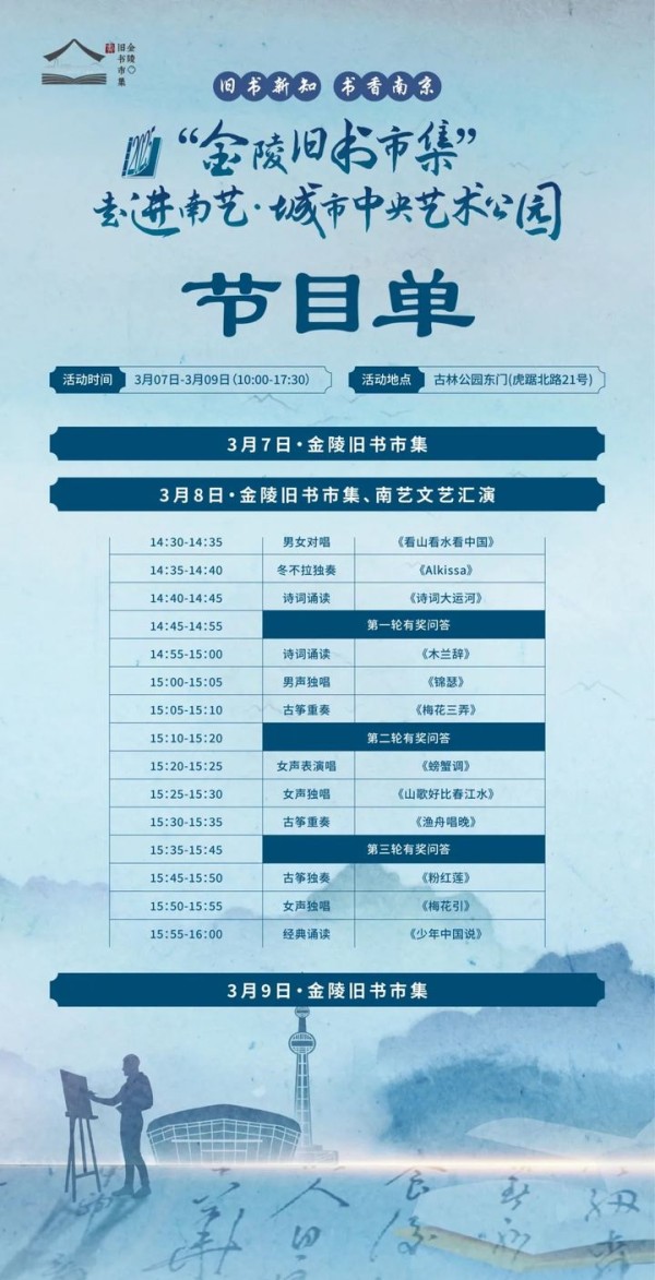 继2024熙南里、南大仙林、南大鼓楼的旧书狂欢后,3月7日-9日连续3天,2025金陵旧书市集走进南京艺术学院·城市中央艺术公园,将为南京er打造一场「艺术×古籍」的沉浸式实验场。