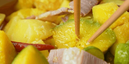 再夹一筷子火腿+瓜肉:咸香混着清甜,劲道碰撞绵软……