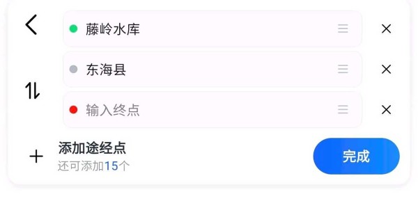 4.途经点:在导航软件中,途经点是指出发地到目的地的这段行程中,用户额外设置经过的地点。最多可以设置十几个途径点,这个功能也是非常实用的,例如周末几个朋友在一起聚会,散会以后需要把同事送回家。