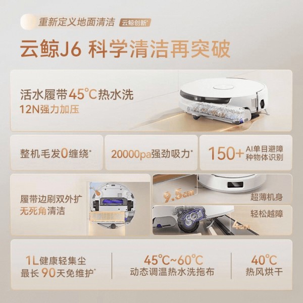推荐入手:云鲸J6扫地机器人洗拖一体机