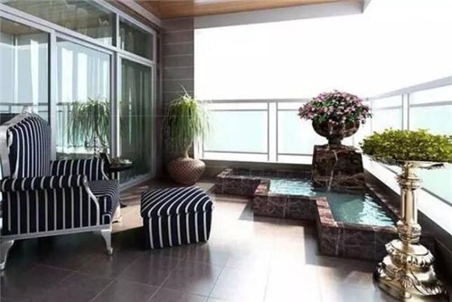 假如您家的阳台够大的话,那么不妨在家里打造一款像图中这样的水池,整个阳台也随之变得灵动起来。建议暴晒的阳台不要养鱼;若是没有暴晒,那就放心的做一个小鱼池,可以养鱼,可以养龟,增加阳台的生命力。