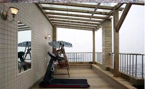 图中这款阳台设计很简单,却十分符合现代人的生活。如今人们的生活都非常的忙碌,他们往往没有时间来健身,长此以往对人的健康损害是很大的。如果能在阳台上打造出一款健身房的话,健身就变得更加的方便,健康也就唾手可得了。
