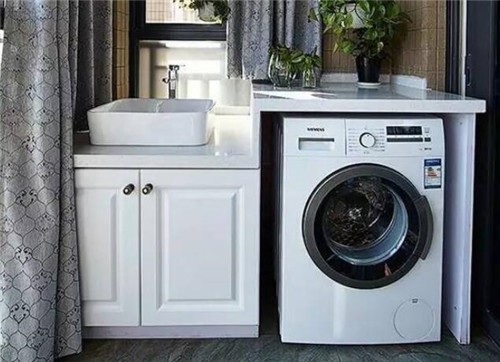 如果您侧重的是阳台的实用价值的话,那么最好把阳台装成这样的。房主人把阳台的一角打造成为洗衣、烫衣、晾衣的空间,这样很多程度上提高了阳台的空间使用率,洁白的洁具和电器是那么的纯净,可以带给人一整体的好心情。
