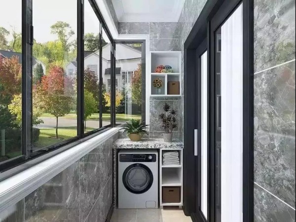 阳台变洗衣房:安装滚筒洗衣机,设置晾衣架和储物柜。 #生活技巧# #居家生活技巧# #家庭装修技巧# #阳台改造#
