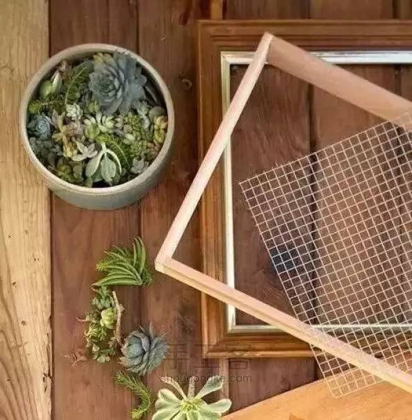 1.可以利用镜框、画框、相框,通过DIY改造成为一个可以栽种多肉的种植盘。