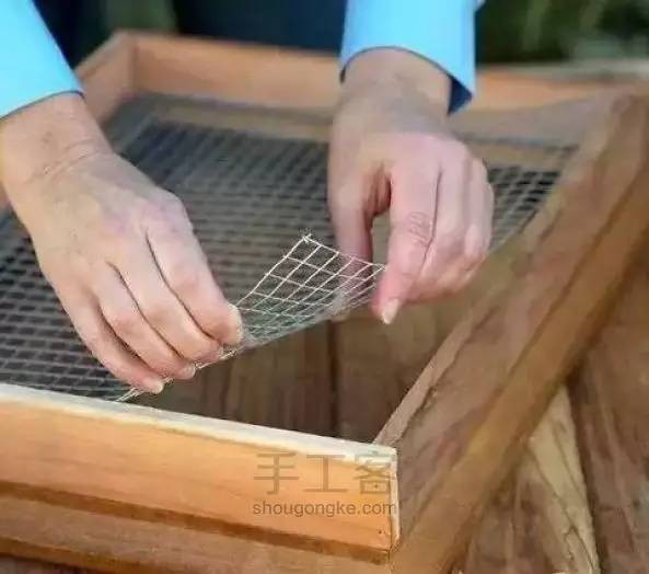 3.将两个框架钉一起,增加框容器的深度以填埋泥土,同时适当的做好防水工作。