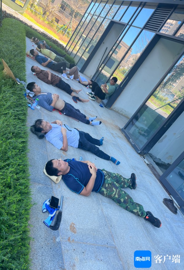 在支援海口灾后恢复重建的3天以来,省林业局救灾工作队顶着烈日、冒着风雨,一刻不停地清理道路上的树枝;他们在路边就地用餐,躺在地面休息;他们联合环卫等工作人员协同作战,为灾后清障、恢复生产生活秩序提供强大工作合力,确保多个路段全部清障、实现安全通行。