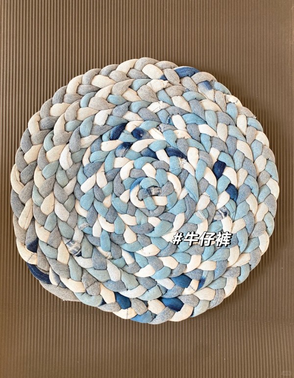 牛仔布、纯棉T恤或袜子都可以改造成手工地垫。将牛仔裤裁剪成长条,像编麻花辫一样编织并固定;T恤则裁剪成布条后编织;袜子可剪成小圈套在一起编织。改造后的地垫无异味、使用方便,放在门口或厨房既实用又能装饰家居。