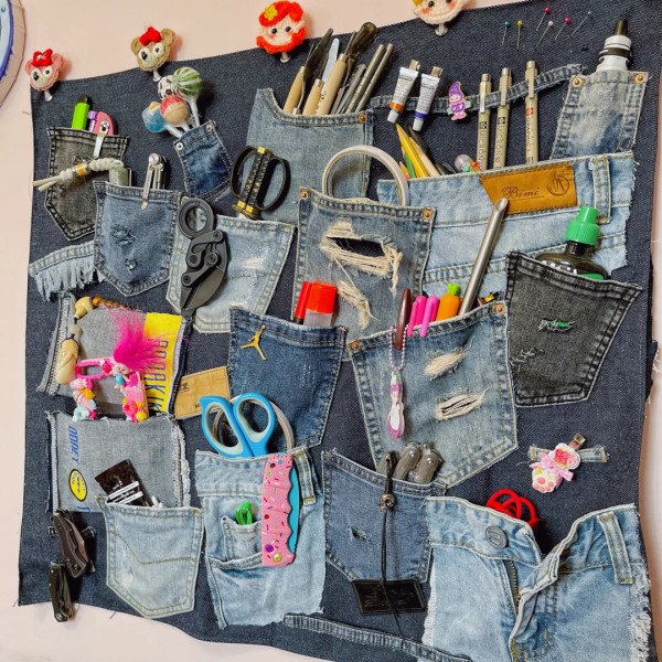 牛仔裤的裤腿可剪下作为收纳袋底部,裤兜拆卸后缝在底部,做成墙上收纳袋;T恤则可裁剪成抽拉绳收纳袋,用来收纳被子或衣物。改造后的收纳工具既节省空间,又能让物品分类更清晰,适合小户型或杂物多的家庭。