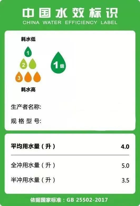 节水坐便器符合一级水效标准,单冲坐便器或双冲坐便器平均用水量达到3.6升及以下、双冲坐便器全冲用水量达到4.5升及以下。