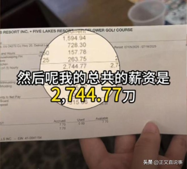 14. 刚到美国的第一个月,因银行卡尚未办妥无法扣缴税务,酒店在他账户开通后一次性补发了一个月工资,共计2744.77美元,折合约19518元人民币。