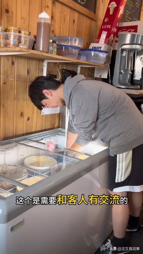 18. 后来他调整策略,转至饮品区工作,负责制作冰淇淋、奶昔和冷饮,与顾客交流频率显著上升,收到的小费也随之增多,不过金额仍然不高。