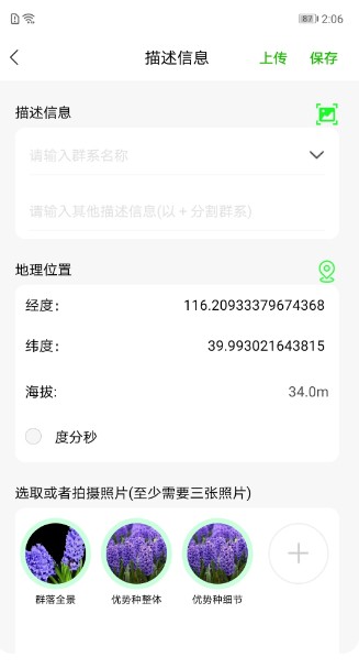 绿途是由北京数字绿土科技股份有限公司开发,由中国科学院植物研究所提供数据和理论支持。绿途APP的定位是一款专业的植被分布数据采集软件。具备普通用户拍照记录模式和专家用户打点记录模式。拍照模式下,用户可以根据软件自带的自动定位功能,在当前GPS位置下进行图像数据的采集,描述类别并上传到服务端。打点模式下,用户可以根据软件自动的谷歌影像和1:100万植被图等图层作为参考,进行目视范围内植被名称的快速标记,上传。