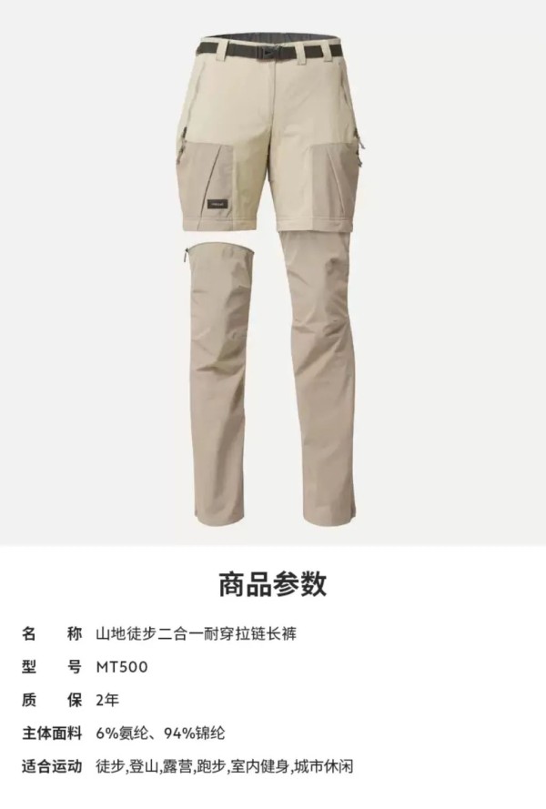 大部分山地场景都够用了,性价比之选小腿侧面带拉链,一拉就可以拆卸成短裤,在夏季会很实用。