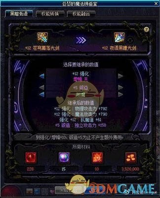 泰波尔斯武器、首饰和特殊装备可以使用普雷的团本材料进行升级为普雷装备,并且保留增幅。强化、附魔、徽章等打造,需要消耗精炼的时空石和灵魂之源,根据打造的程度额外消耗金币,普雷夜语黑瞳武器可继续升级为界.夜语黑瞳可保留原武器的打造,两种武器属性一样,改变的是武器外观颜色,和特效颜色,界.夜语黑瞳可以通关翻牌获得。