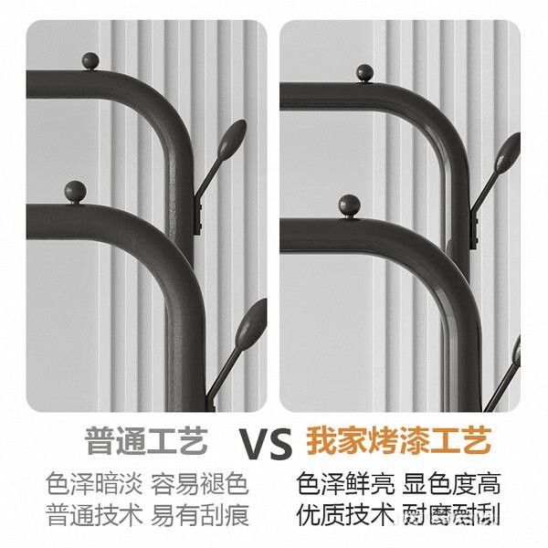 楠叶衣架的货号是GYGX-2-T,属于落地晾衣杆室内挂衣架。它采用高品质的金属材质,表面经过喷漆处理,具备出色的耐磨性和防锈功能,确保了产品的耐用性和使用寿命。其简约的设计风格使得它能够轻松融入各种家居环境,无论是卧室、宿舍还是浴室,楠叶衣架都能完美胜任。