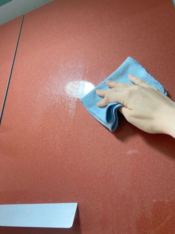 鱼鳞布,自带抛光效果,一边带走电解水溶解的油渍,一边抛光让柜门看起来亮亮的。