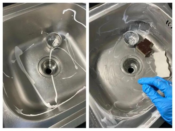 水槽四周打的玻璃胶,如果发霉变黑,用除霉啫喱,搜一下网上一大堆,不过也不一定要买,如果您家里有84消毒液的话,倒一点出来到卫生纸上,用被浸湿的卫生纸敷在发霉的地方。