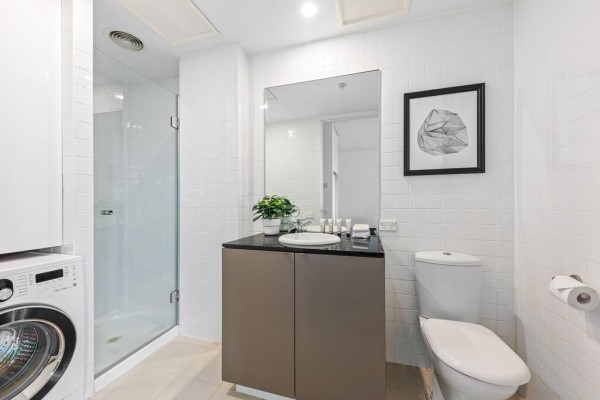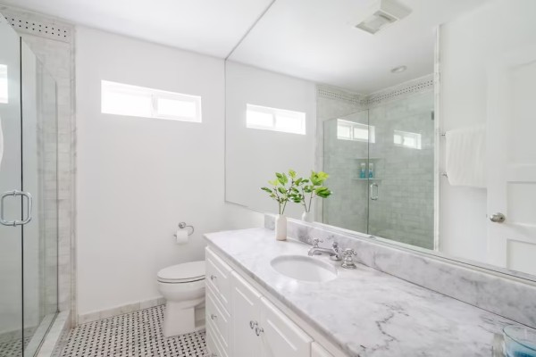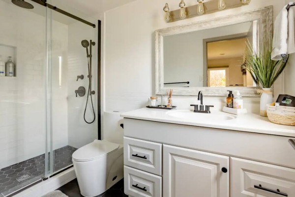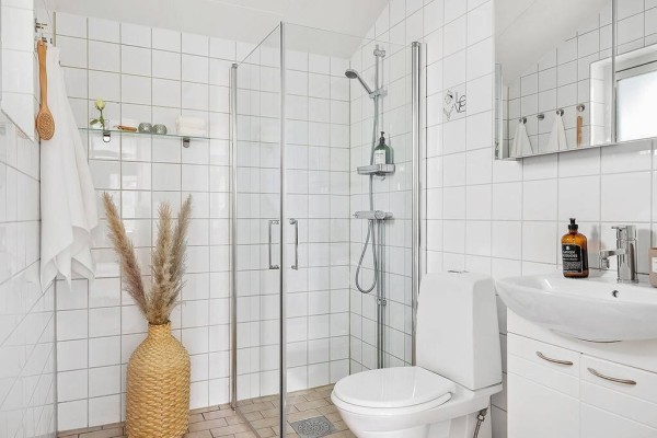 2.淋浴区和洗手盆分离。在淋浴区和洗手盆之间设置一个隔断或半高墙,将两者分开。这种设计可以避免在用水高峰期时,洗手盆和淋浴区相互干扰。