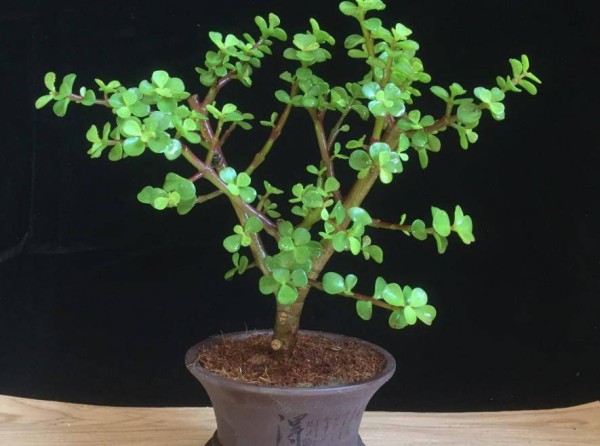 金枝玉叶也是一种肉质植物,其叶子又小又绿,它长出小的老桩盆景,放在室内也有很大的观赏价值。