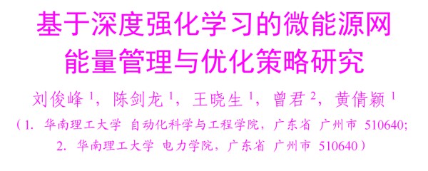 [1]刘俊峰,陈剑龙,王晓生等.基于深度强化学习的微能源网能量管理与优化策略研究[J].电网技术,2020,44(10):3794-3803.DOI:10.13335/j.1000-3673.pst.2020.0144
