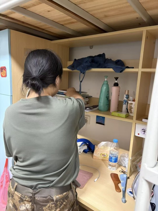 为培养新生良好的生活习惯与团队协作意识,智慧康养学院在新生军训期间开展了内务整理专项活动。从整洁的床铺到有序的书桌,从分类收纳的洗漱用品到统一规范的物品摆放,新生们以高标准、严要求,在方寸宿舍空间里,交出了一份展现康养学子风貌的“内务答卷”。