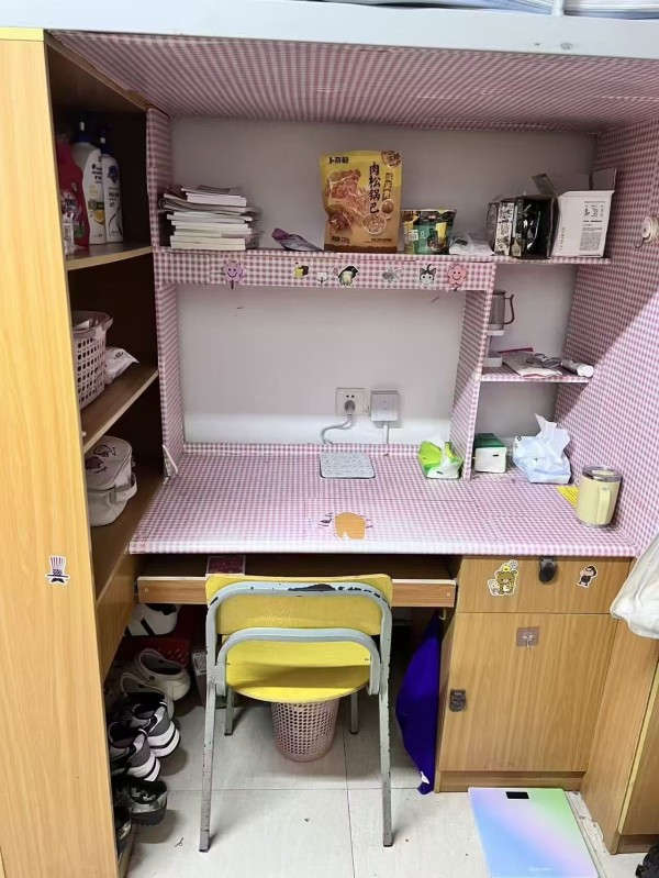 在遵循内务规范的前提下,新生们也将青春创意融入宿舍布置。有的宿舍以清新的床品打造“治愈系”空间,草莓、云朵图案的床单充满活力;有的则用可爱的贴纸、温馨的装饰点缀书桌,让学习角落充满暖意;还有的结合专业特色,在收纳与布置中体现康养学子对生活品质的追求。这些个性化的装扮,既展现了新生们的审美与巧思,也让宿舍成为了充满归属感的“温馨小家”。
