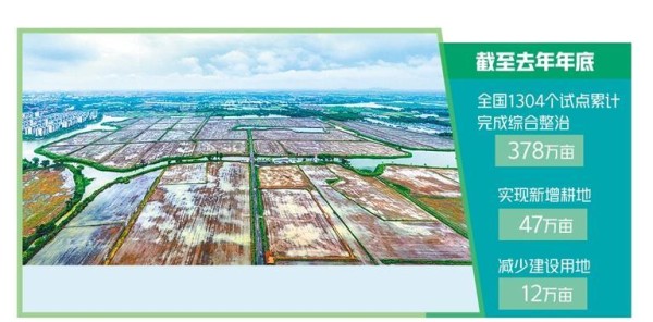 首批全域土地综合整治试点15个典型案例于近日发布。数据显示,截至去年年底,全国1304个试点累计完成综合整治378万亩,实现新增耕地47万亩、减少建设用地12万亩。