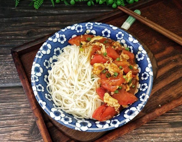 食材:干面条三人份,鸡蛋三枚,西红柿两颗,小葱三根,豆瓣酱一汤勺,白糖少许,食用油少许