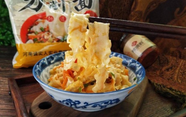 2、把煮好的刀削面捞出来放入冰水中,在下锅之前把刀削面沥干水分