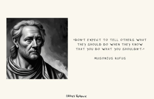 “当别人知道你做了不该做的事时,就不要试图去教别人他们应该做什么”。——穆索尼乌斯·鲁弗斯
