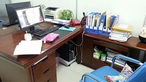 依旧三段式 一、分类。 所有东西全部拿出,分三类: 15年的资料物品,部分转成电子版并拷贝到移动硬盘备份,部分归类标注后放入文件柜,部分单面打印文件去除架子和订书钉后作为二次打印纸,部分碎纸机销毁;办公用品和个人用品分常用品和备用品;食品和饮品,检查日期,并合并包装。 二、收纳 按使用喜欢和使用频率分别放到合适的位置! 右手边文件架里至坐向右:个人常用文件,单位常用文件, 常用专业书籍,正在进行的项目材料,本月个人专业学习材料。 桌面只留绿植,电脑,水杯,笔筒,电话。 抽屉至上而下分别为常用办公用品,常用个人用品,食品和饮品。 中央扁抽屉放一直lamy,一个日程本,一个镜子。 整理前vs整理后