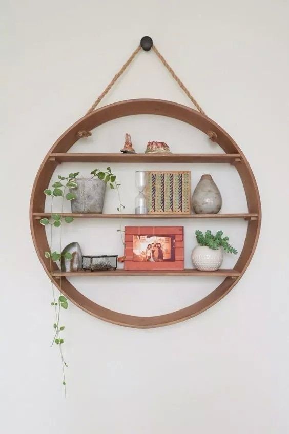 颜值颇高的圆形木质置物架,既能装饰也能收纳,放上小绿植,瞬间温馨感满满有木有?把旅游带回家的小物件也放上去,更增添出品位呢。