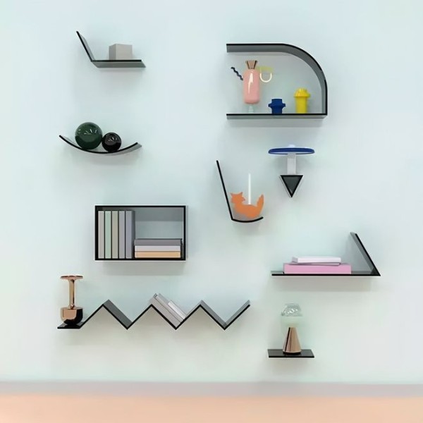 一组款式各异,形状各异的钛合铝制置物架,非常的个性有可爱,用来装饰墙面最好不过,低调的黑色点缀墙面,带有独特的工艺气息,时尚单品轻松GET√!
