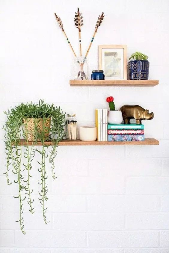 单调白墙用简约款式的三角木板置物架装饰,单调不失个性,放置一些小摆件和绿植,一点淡淡的生活气息扑面而来,让白墙更有活力,空间也变得更加好看。