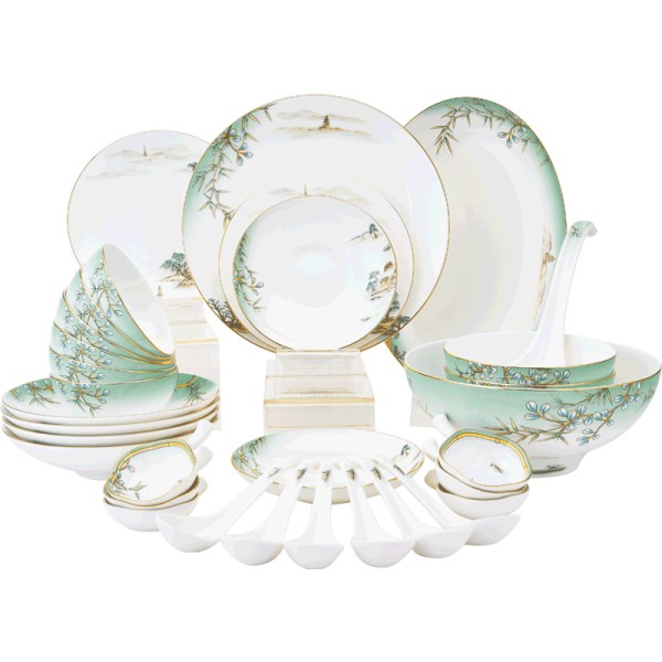 首先,玛戈隆特骨瓷碗碟套装以其精美的竹子和山水图案设计,深受消费者喜爱。它的优雅绿色和金色装饰,既能增添餐桌的高贵感,又能体现出中国传统文化的魅力。这款餐具套组适合6人份,包含32个头,完美满足家庭聚餐和节日庆典的需求。