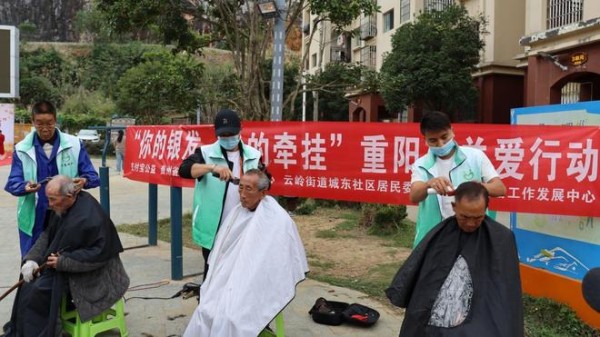 义剪、健康咨询环节是本次公益活动的重要组成部分。在义剪环节中,由云善社会工作发展中心组织3名理发师5名志愿者免费为社区60周岁以上居民提供理发服务,不仅给老人们提供生活便利,还享受到了重阳节活动的氛围,更传递了社会的温暖与关怀,此次活动共计帮助老人理发58余人。而在健康咨询环节,来自云岭街道卫生院的医生现场坐诊,为居民们提供免费的健康咨询和疾病预防指导80余人次,解答大家在日常生活中遇到的健康问题,帮助大家树立科学的健康观念,提升搬迁群众生活质量。