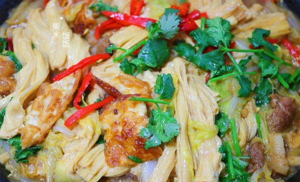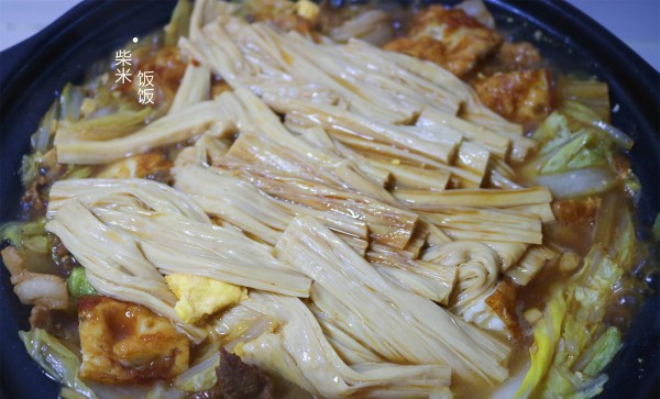 1,我用的是鲜腐竹,出锅前下锅,炖半分钟就好。如果是干腐竹浸泡的,需要和煎蛋一起下锅炖。