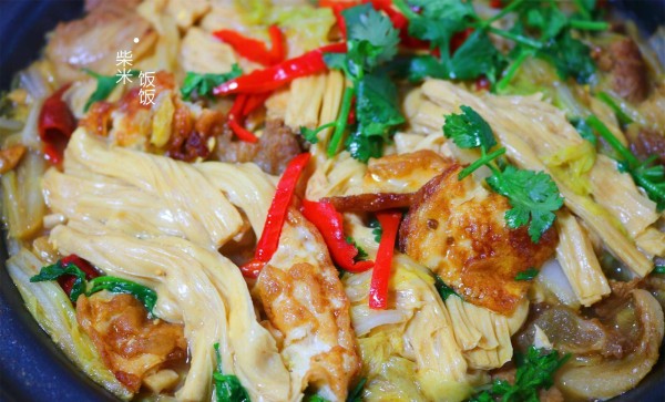 这个季节,我家炖菜最常用的就是大白菜、各种豆制品。这两种可以随意搭配,随意发挥,好做不翻车,荤素都好吃。如果家里有砂锅,可以用砂锅炖菜,保暖性好,吃到最后都是热乎的。这样的家常菜,和冬天最配~