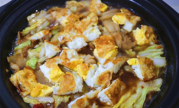 白菜煎蛋炖腐竹