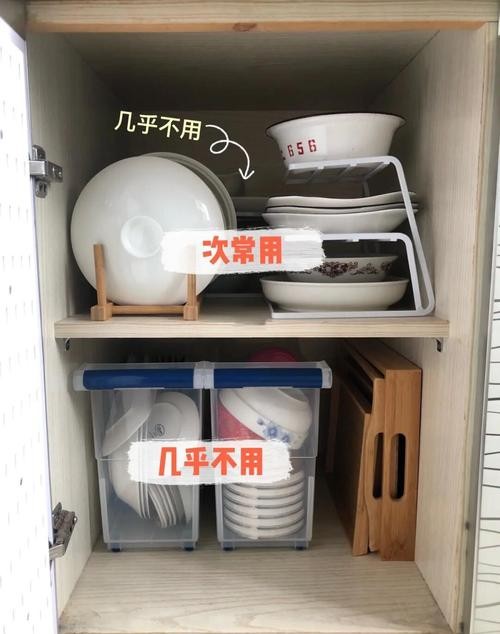 1.分区收纳,提高效率。将碗碟按照大小、用途进行分类,分别收纳在不同的区域。常用的碗碟放在方便取用的位置,不常用的则放在高处或橱柜深处。可以利用隔板、抽屉分隔器等工具,进一步细化收纳空间。
