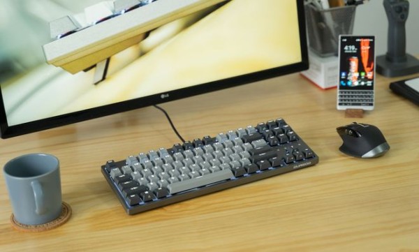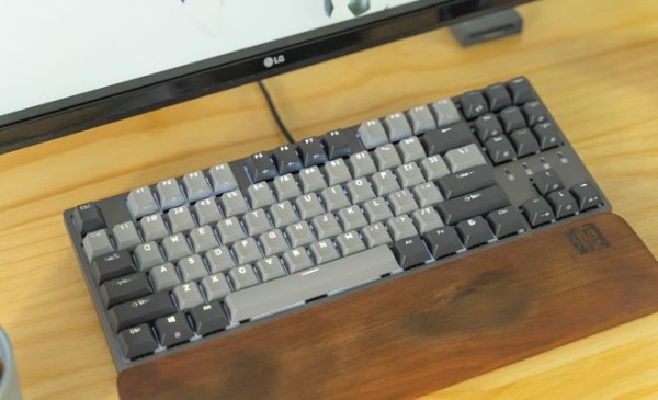 对于桌面键鼠,我的首选还是无线方案。之前用着Filco的双模,104键比较占地方。现在桌面空间比较小,最近换了个87键的杜伽k320。用着也还行,有灯光,手感也合适,cherry红轴,500+的价格不算贵。唯一的遗憾是没有无线,希望这款早日能有双模版本。87键配合之前某宝定制的实木手托,刚刚好。