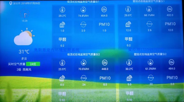 奥斯恩室内环境监测仪内置先进的大气环境自动检测传感器,可**检测空气中的PM2.5/PM10、噪音、温湿度、风速风向、一氧化碳、二氧化碳、硫化氢、氧气、二氧化氮、二氧化硫、VOC、等各类指数指标,并通过采集和分析设备进行数据分析和存储。通过无线或有线的数据传输(GPRS、WIFI或3G)方式发送至管理中心的数据接收平台,并通过各类显示终端(如LED大屏幕)进行实时发布。