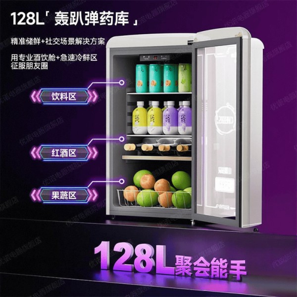 经典复古设计:灵感来源于经典元素,优雅而富有情怀,轻松融入各种家居风格。 冷冻与冷藏双空间:120L冷藏与12L冷冻空间,存放冰激凌、饮品轻松自如,满足不同需求。 高效净化除菌:先进技术实现99.99%除菌,高标准保障食品安全,为家人健康保驾护航。 合理分区设计:多维存储方案,红酒、鲜果各得其所,更好保存食材的新鲜与风味。 母婴专属空间:特别设有母婴区,专门存储母乳及辅食,贴心呵护宝宝健康成长。适合人群:追求生活品质与家庭健康的年轻夫妻、重视宝宝餐饮安全的新手爸妈。