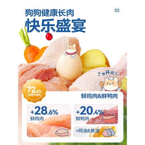 乐顿狗粮鲜肉无谷粮专为幼犬和成犬设计,适合泰迪、比熊、柯基等犬种,鲜肉含量高达49%,优质蛋白含量为91%。这种狗粮采用冻干包裹颗粒,确保了营养成分的最大化保留。