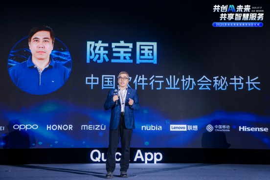 中国软件行业协会秘书长陈宝国为大会开幕致辞,陈宝国秘书长指出AI技术正加速推动智能终端成为人机交互核心入口,带动移动服务生态从“流量驱动”向“场景驱动”转型。高度肯定了快应用智慧服务生态在AI赋能背景下展现出的生命力,快应用正迈向“主动服务”新阶段,实现更智能、更精准的服务体验。协会将持续支持快应用标准制定、技术创新与生态协同方面发挥桥梁作用,推动产业开放共赢发展。