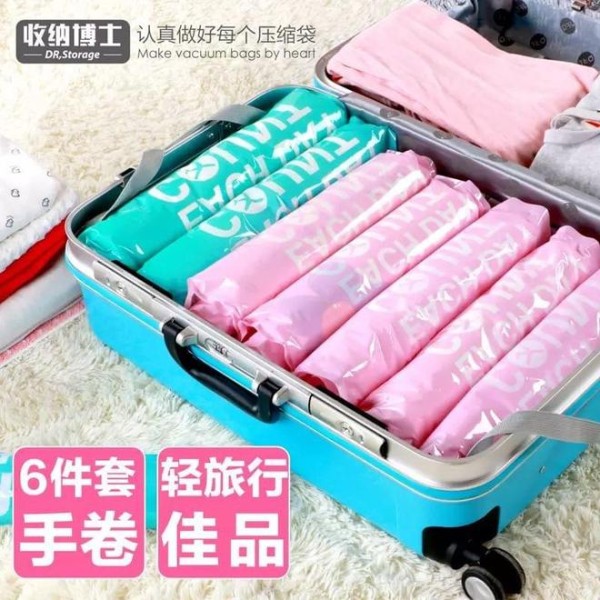 收纳博士 防水出差旅行收纳袋6件套 便携式手卷行李箱真空压缩袋