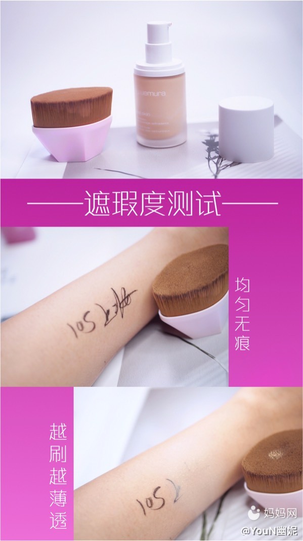 植村秀花瓣雾光粉底液+55号魔术无痕刷=完美雾光底