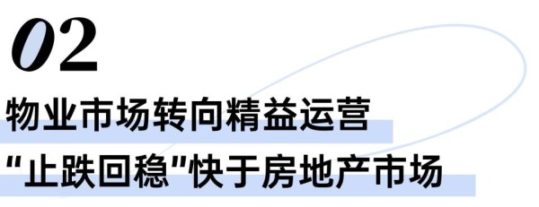 物业市场相比房地产市场表现更好一些。整体物业市场“止跌回稳”比房地产市场的“止跌回稳”来得更早,有几个表现: